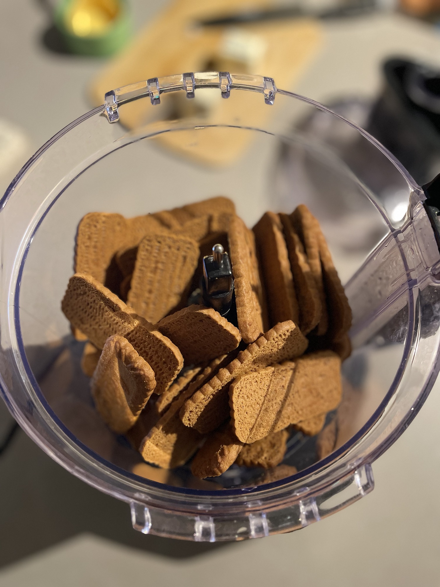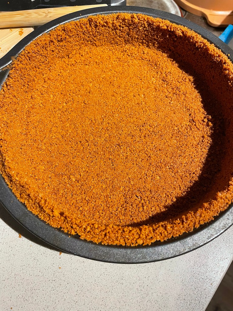 1. I started off by following the recipe and used Biscoff biscuits with Butter to make the crust.